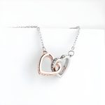 Náš oslnivý náhrdelník s dvoma krásnymi prepletenými srdiečkami zdobenými kryštálmi z kubických zirkónov. Tento nastaviteľný náhrdelník s prepletenými srdiečkami žiari ako hviezda na oblohe a je dokonalým doplnkom na každodenné nosenie. Nebledne, nehrdzavie, nemení farbu ani sa nefarbí. Nečakajte, PRIdajte si ho do košíka a získajte zľavu!