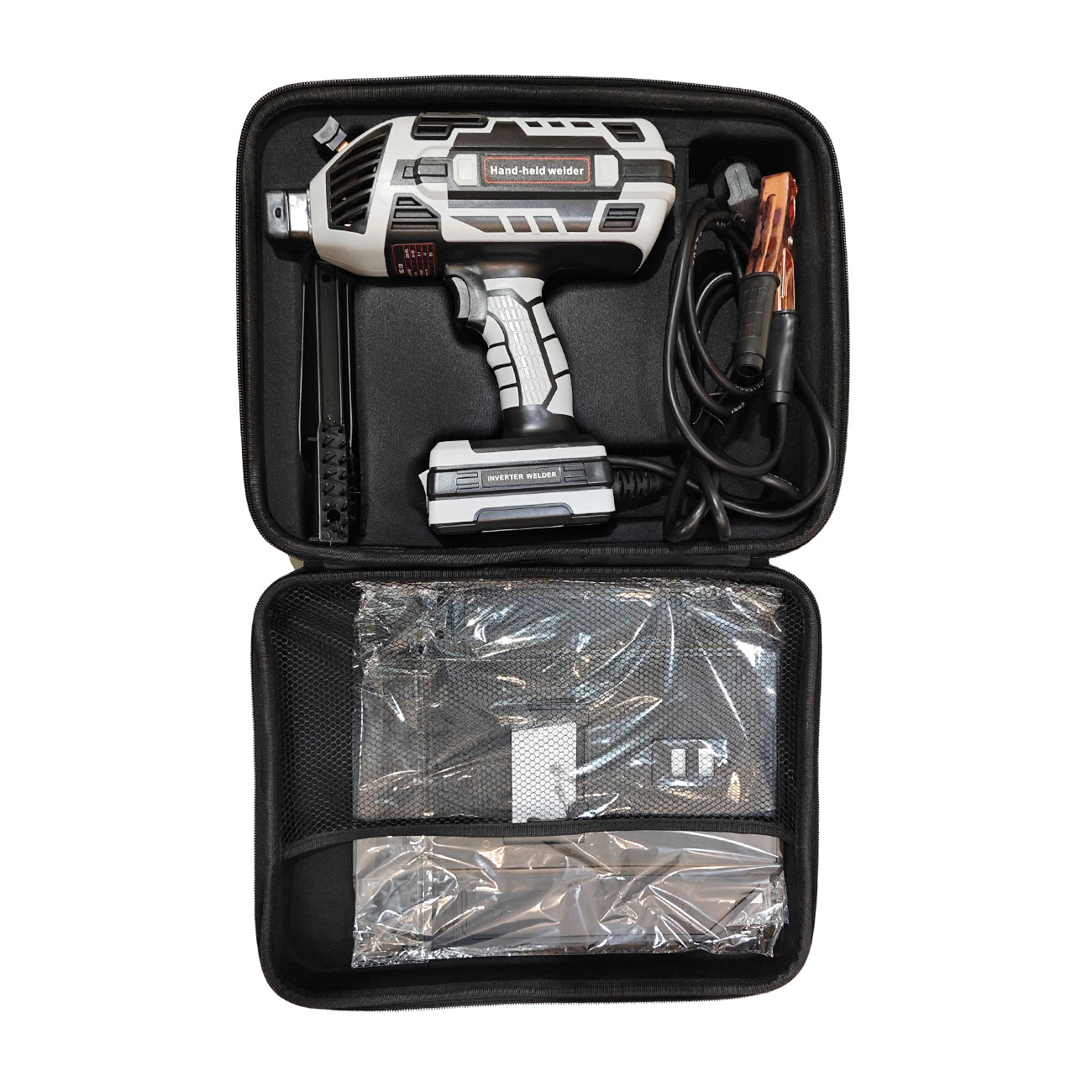 Obsah balenia: zváračka, úložný kufor, skladacia zváracia kukla, drôtená kefa, uzemňovací kábel (1,5 m) vrátane pripojovacích klieští