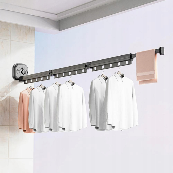 Výsuvný sušiak na bielizeň s prísavkou – bez vŕtania, kompaktný a prenosný pomocník na doma i na cesty. Šikovné riešenie pre všetkých, ktorí nechcú alebo nemôžu vŕtať do steny. Výsuvný sušiak s pevnou prísavkou ľahko pripevníte na okno, dlaždice alebo iný hladký povrch – bez náradia, bez skrutiek. Je ideálny do malých bytov a na cesty. Šetrí miesto, energiu a zabezpečuje prirodzené a šetrné sušenie bielizne.